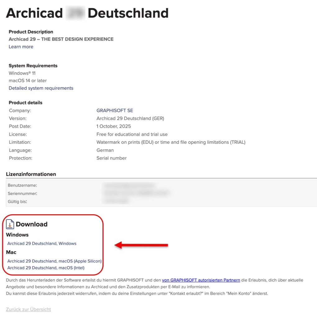 - Registriere dich auf https://myarchicad.graphisoft.com für die zu dir passende Bildungsversion.